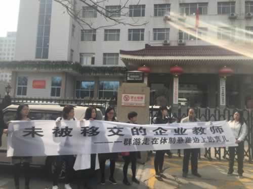 3月26日,据知名博主@秦岭二月爆料称:西安市西光中学部份教师区委门口拉横幅维权。博文称: 2004年就调入西安市西光中学,但因单位体制改变,这些人末被移交到社会学校,他们的编制去哪了?涉及十几名教师贴身利益的迟迟不能解决,被逼无奈在新城区区委门口拉横幅维权。